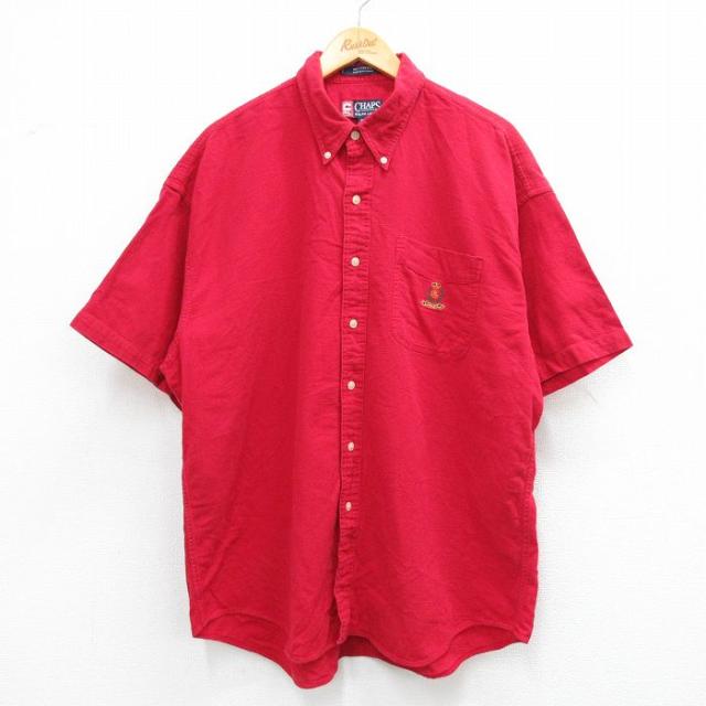 【商品名】 XL★古着 ラルフローレン チャップス 半袖 ブランド シャツ メンズ 90年代 90s ワンポイントロゴ コットン ボタンダウン 赤