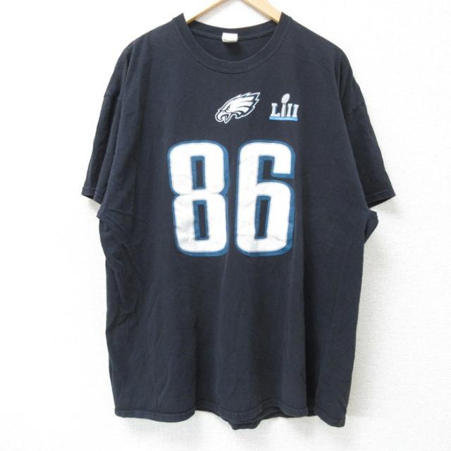 古着 半袖 Tシャツ メンズ NFL フィラデルフィアイーグルス 大きいサイズ コットン クルーネック 濃緑 グリーン アメフト スー 中古 古着