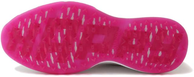 コーディネートの足元に映えるカラーが特徴の最新スパイクレス「CHEVNEON」。ミッドソールには衝撃吸収性、反発性に優れたキャロウェイ独自のクッショニング素材。「CRUSH-FOAM」を採用。半透明のアウトソールからは、創業者の言葉「HIT till HAPPY(成功するまで何度でもやる)」が覗くデザイン。