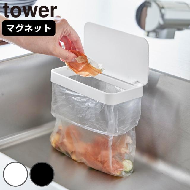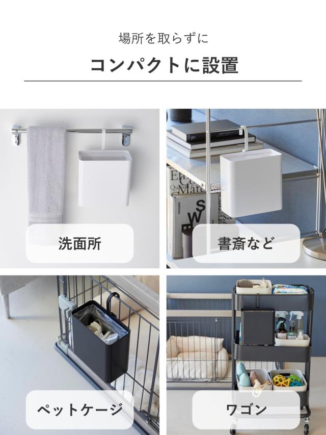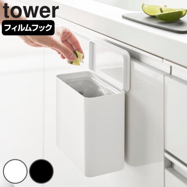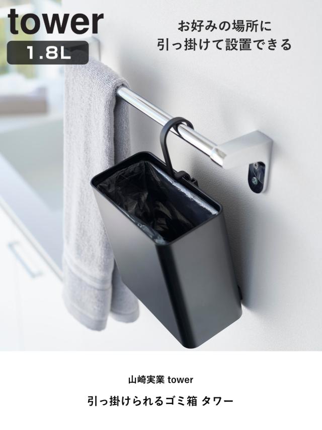 山崎実業 tower 引っ掛けられるゴミ箱 タワー ( 4903208102193 タワーシリーズ ゴミ箱 引っ掛けられる ごみ入れ ダストボックス 引っ掛け ごみ箱 フック コンパクト スリム 小さい 角型 袋止め付き )