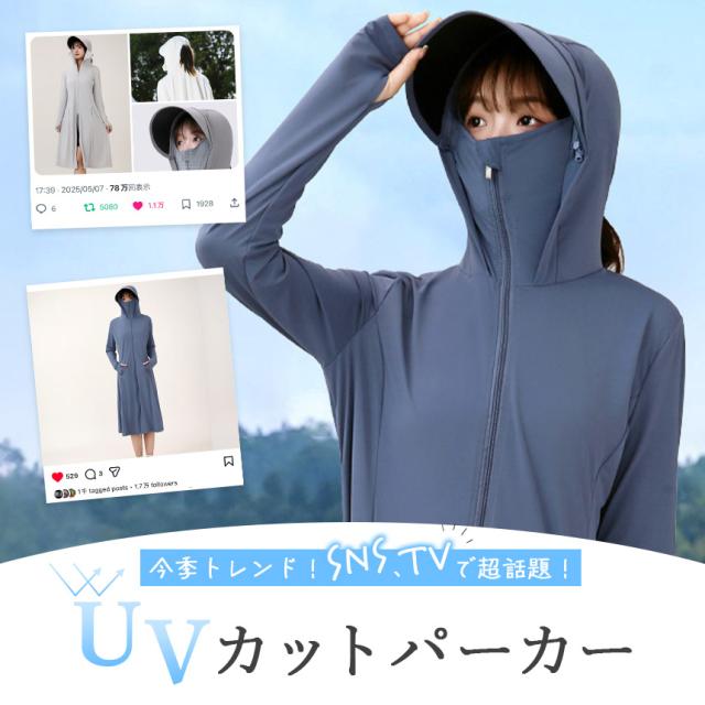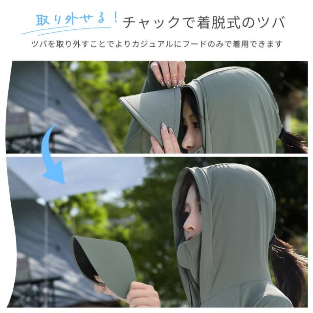 SNS・TVで超話題!サンバイザーのようなツバ付きのフード、顔の下部分までジップアップできるデザイン日差しが当たる面積を最小限に絞りしっかり日焼けを防止しますUVカット×デザイン性×機能性の三拍子揃ったこの夏一着は持っておきたいアイテムですこんな場面におすすめ!・歩きや自転車で通学、通勤される方・キャンプや海、登山などのアウトドア・ランニングやウォーキングなどの運動・ちょっとした外出や普段使いに