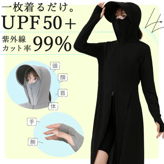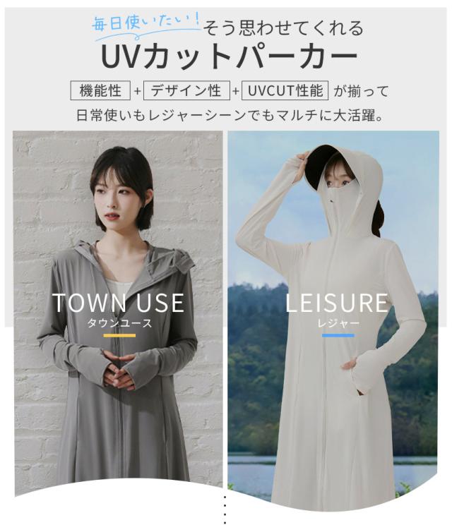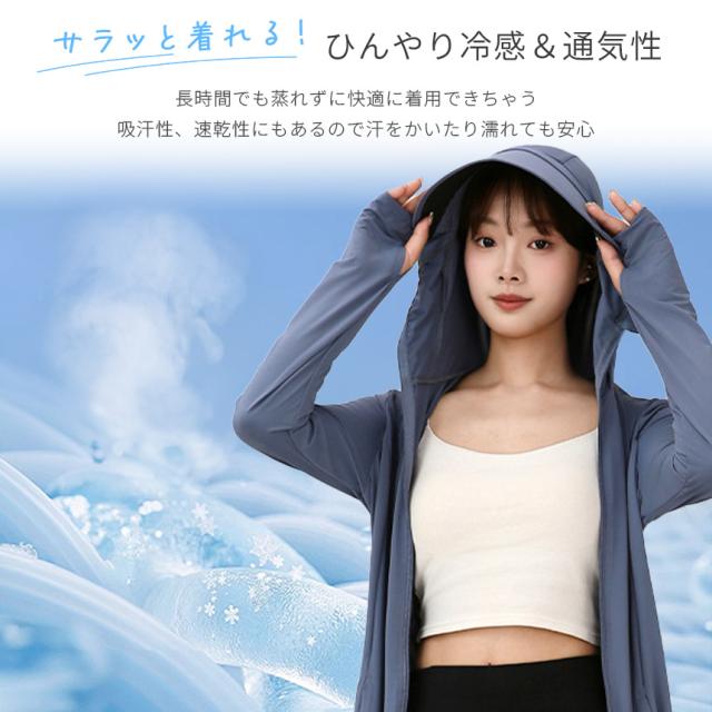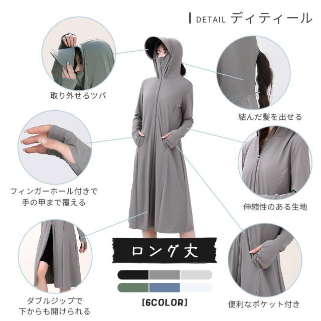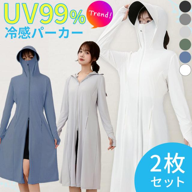 UVカットパーカー ラッシュガード 6色選べる 2枚セット ロング丈 UV パーカー 冷感 長袖 紫外線 着る日焼け止め フード UPF50+ 日焼け止め 遮光 サンバイザー ひんやり ジャケット 薄手 丈 uv 顔まで ジップアップ 服 夏 通気性 レディース フリーサイズ