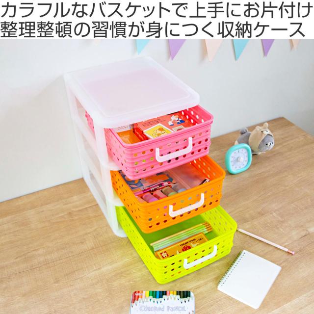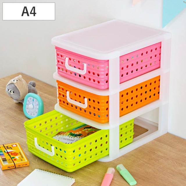 収納ケース A4 幅27.8cm 3段 卓上 ピッコロバスケット ( かご カゴ 収納ボックス 卓上収納 引き出し 子供部屋 小物収納 バスケット プラスチック製 子供 子ども 机 整理整頓 収納 ゲーム ソフト 文房具 文具 プリント )