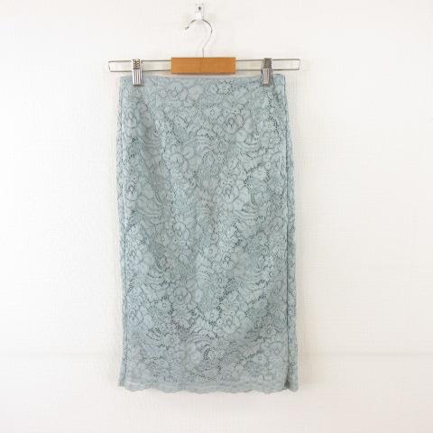 【中古】ジーユー GU レースタイトスカート ひざ丈 緑 M *A72 レディース
