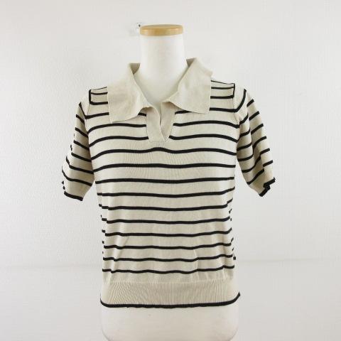 【中古】by Muni:r ボーダー襟付きニット 半袖 ベージュ 黒 F *A87 レディース
