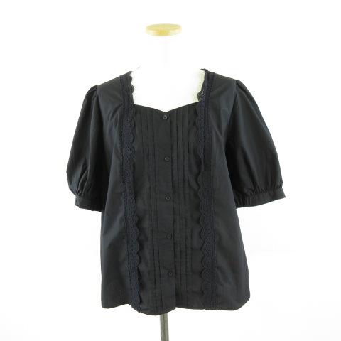 【中古】ジーユー GU レースコンビネーションボリュームスリーブブラウス 5分袖 黒 XL *A91 レディース