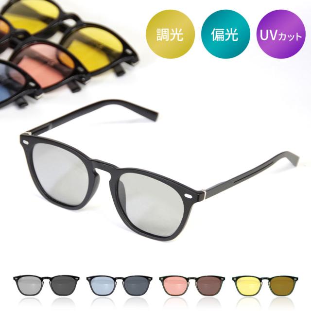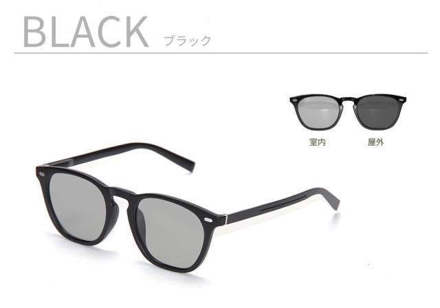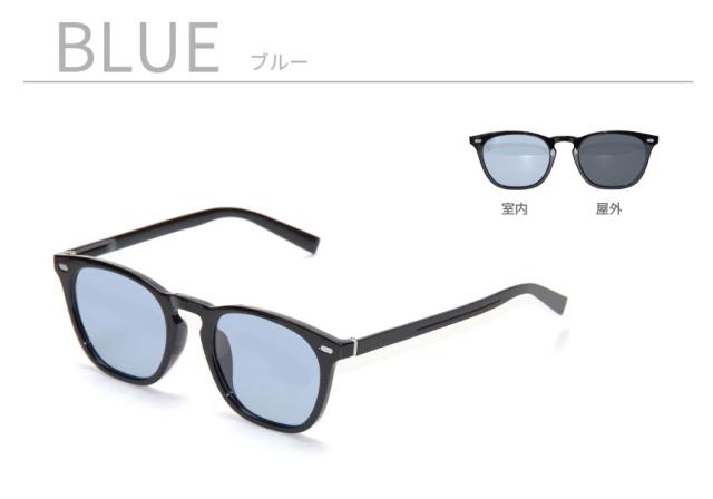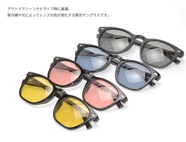 紫外線や光によってレンズの色が変化する調光サングラスです。