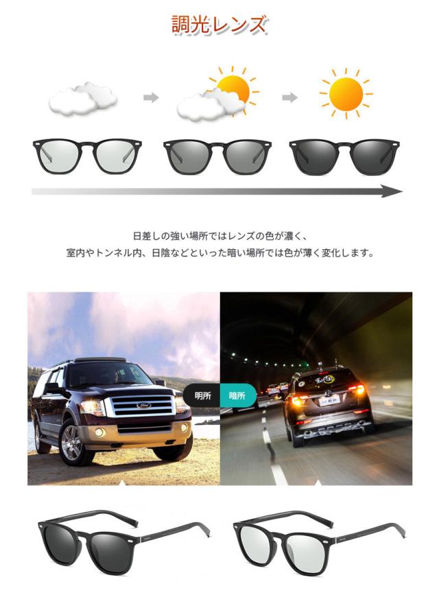 サングラス 調光 レンズ おしゃれ 偏光 UVカット 紫外線 対策 メンズ レディース 男女兼用 釣り 運転用 車 ドライブ アウトドア