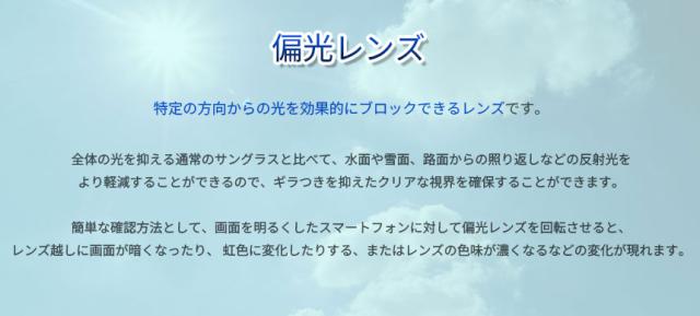 全体の光を抑える通常のサングラスと比べて、水面や雪面、路面からの照り返しなどの反射光を
