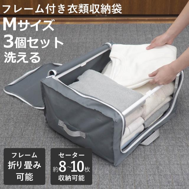 収納ボックス 3個セット 衣類収納 フレーム付き ワクパ スタイル M 幅44×奥行39×高さ23cm ( 折りたたみ 衣類収納袋 衣類収納ボックス 収納 収納ケース 洗濯 丈夫 衣替え 押入れ収納 クローゼット収納 整理整頓 前開き 積み重ね )