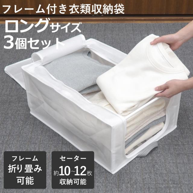 収納ボックス 3個セット 衣類収納 フレーム付き ワクパ ベーシック ロング 幅39×奥行53×高さ23cm ( 折りたたみ 衣類収納袋 衣類収納ボックス 収納 収納ケース 洗濯 丈夫 衣替え 押入れ収納 クローゼット収納 整理整頓 前開き )
