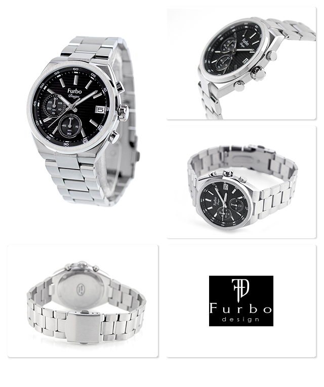 フルボ デザイン Lavora Chronograph クォーツ 電池式 腕時計 ブランド メンズ クロノグラフ Furbo Design NF06W-SSBK 多針アナログ ブラック 黒 おしゃれ 防水 プレゼント 男性 実用的