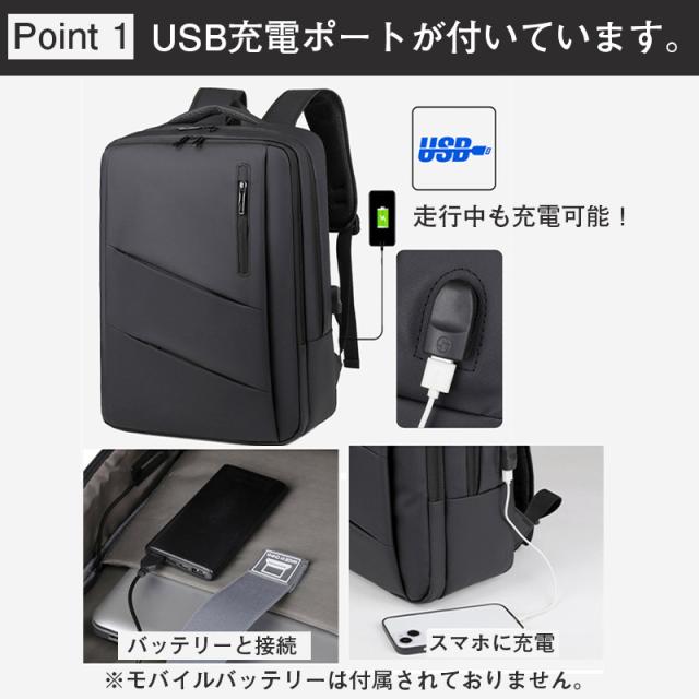 外部USBポート搭載:背負ったままスマホ充電が可能