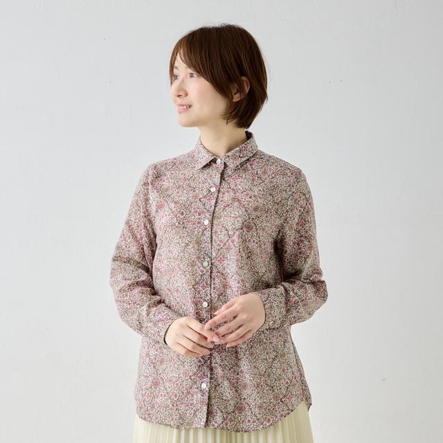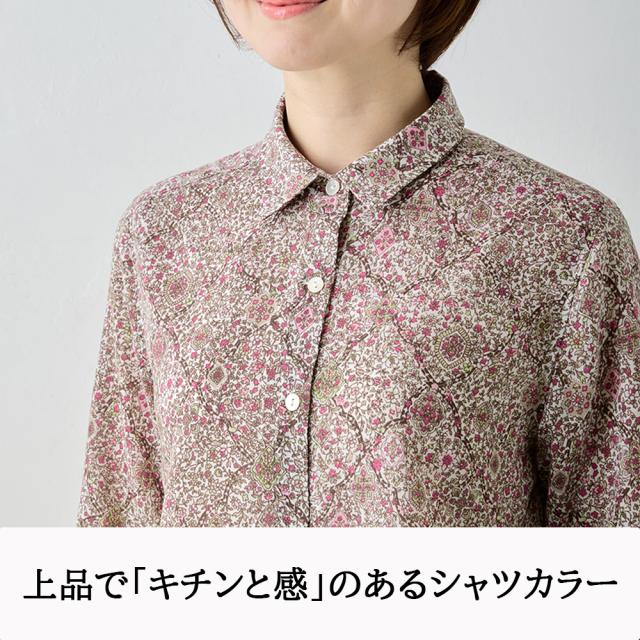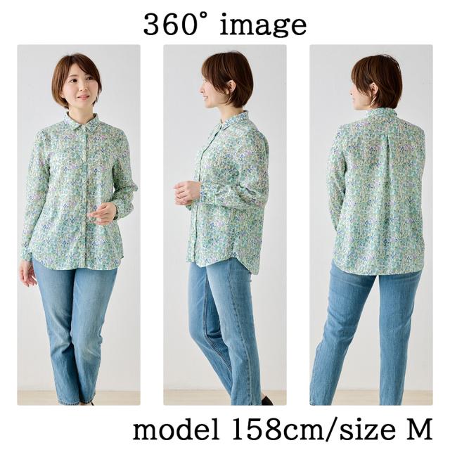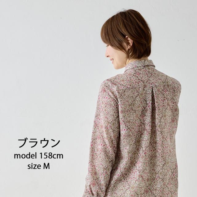 【限定品】日本製 ブラウス 花柄 長袖 レディース 綿100% 春 夏 秋 トップス レディース 女性 襟付き カジュアル さらさら 薄手 女性カジュアル グリーン ピンク ブラウン 緑 桃 茶