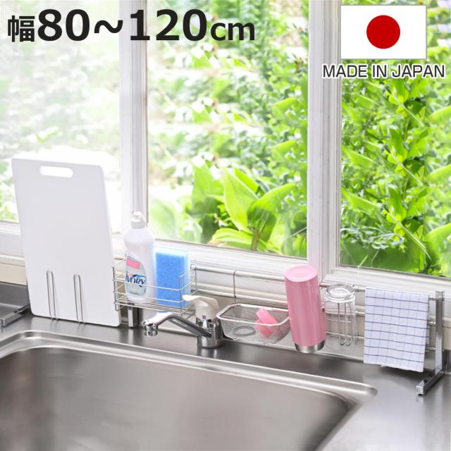 キッチン収納 オールステンレス スライド式 シンク奥 マルチラック ( キッチン カウンターラック キッチンラック シンク上 ステンレス 日本製 スポンジラック ボトルラック ボトルスタンド 水切り 水筒 パッキン スリム )