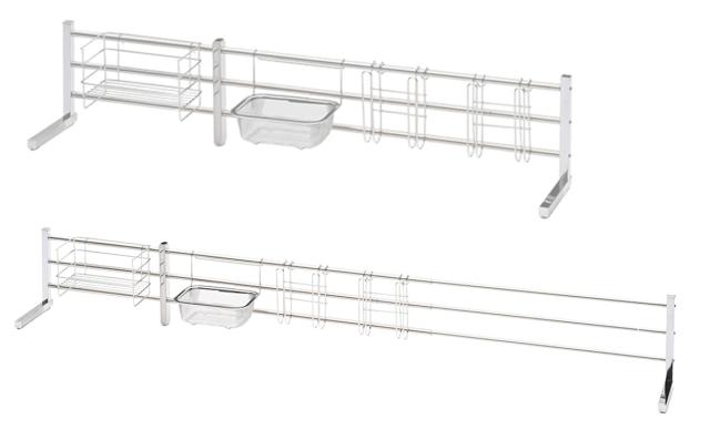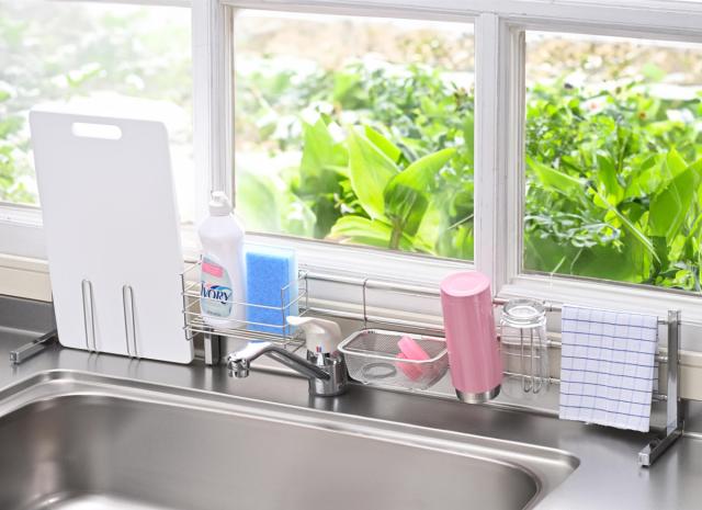 幅80cm〜120cmまで伸縮するので、一人暮らしの方〜ファミリーまで幅広いご家庭でお使いいただけます。奥行が約13cmあれば設置できるので、シンク奥の隙間にフィットしてスペースを無駄なく活用できます。