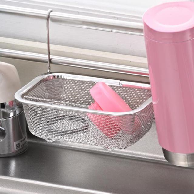 スポンジラックと小物カゴも付属しています。洗剤やスポンジ、無くしやすい水筒のパーツなど細かいキッチンアイテムをまとめて収納できます。