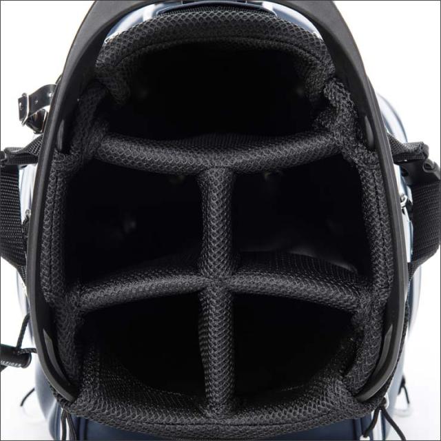 高級感のあるツイル素材にラインプリントが施されたキャディバッグ。