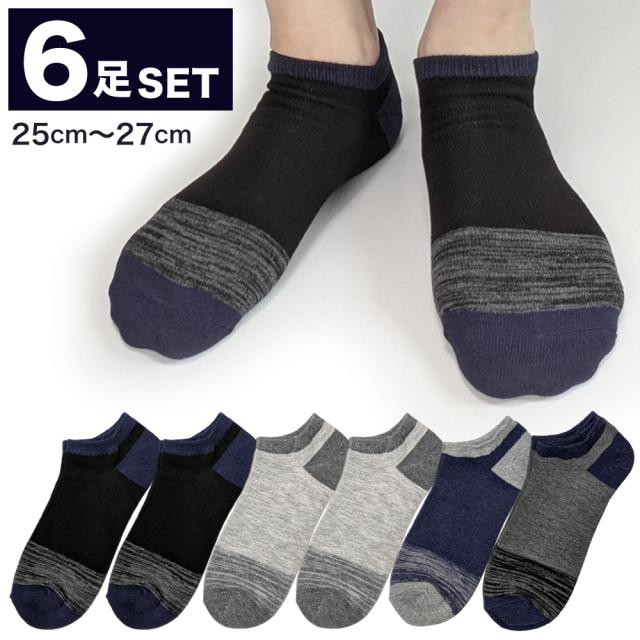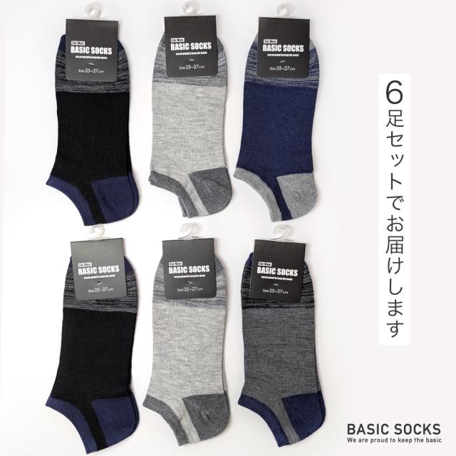 メンズ 靴下 綿混 ハーフ丈 6足セット シンプル おしゃれ 快適 25cm〜27cm 通年対応