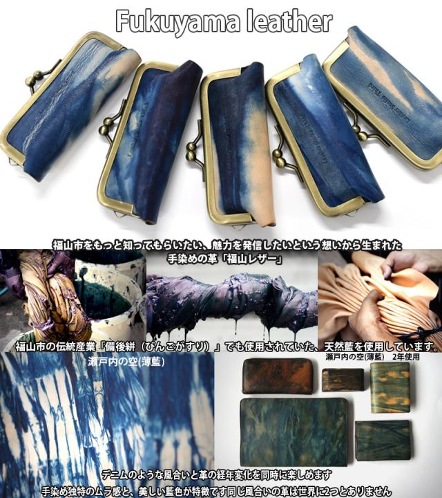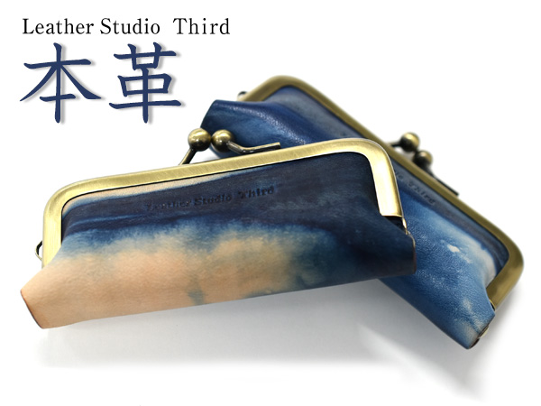 ■日本一の職人が手掛ける 本革 牛革 天然藍 がま口 印鑑ケース 【空】 18mmまで はんこ 福山レザー ハンドメイド プレゼント 送料無料