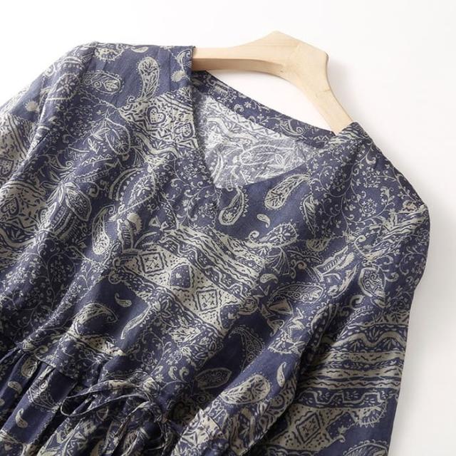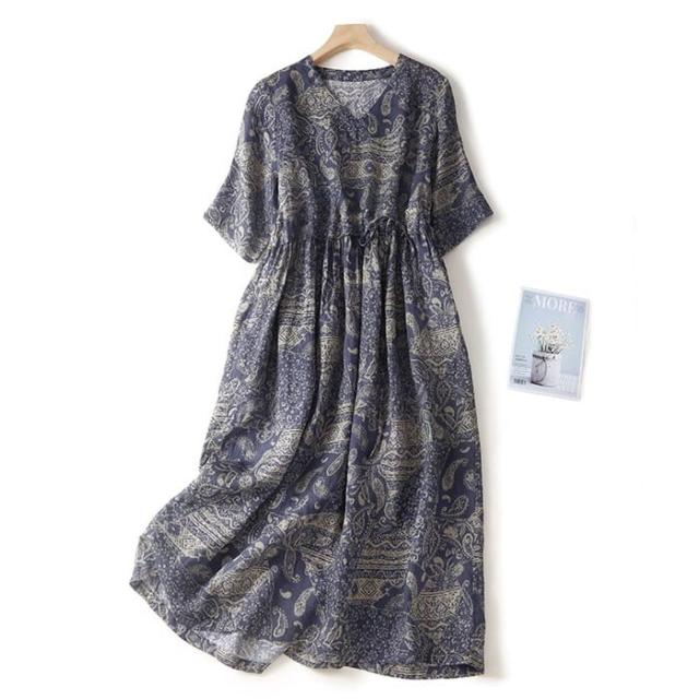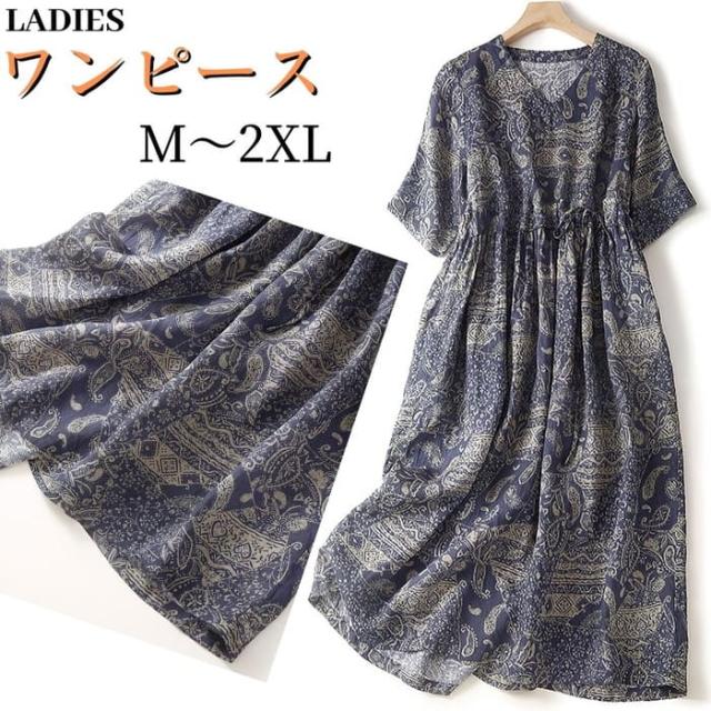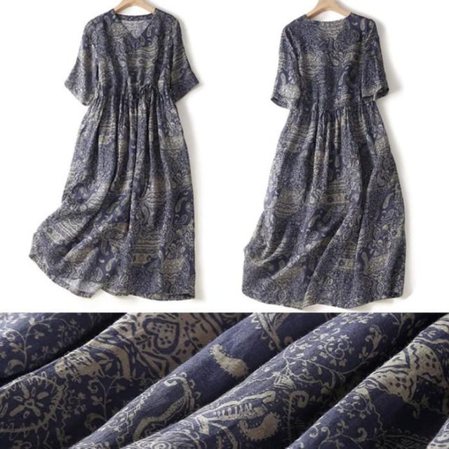 ワンピース レディース 半袖 プリント コットン リネン Vネック 夏 ゆったり ナチュラル リラックス 旅行 お出かけ 母の日 プレゼント 30代 40代 50代 60代 シニア オシャレ 1560