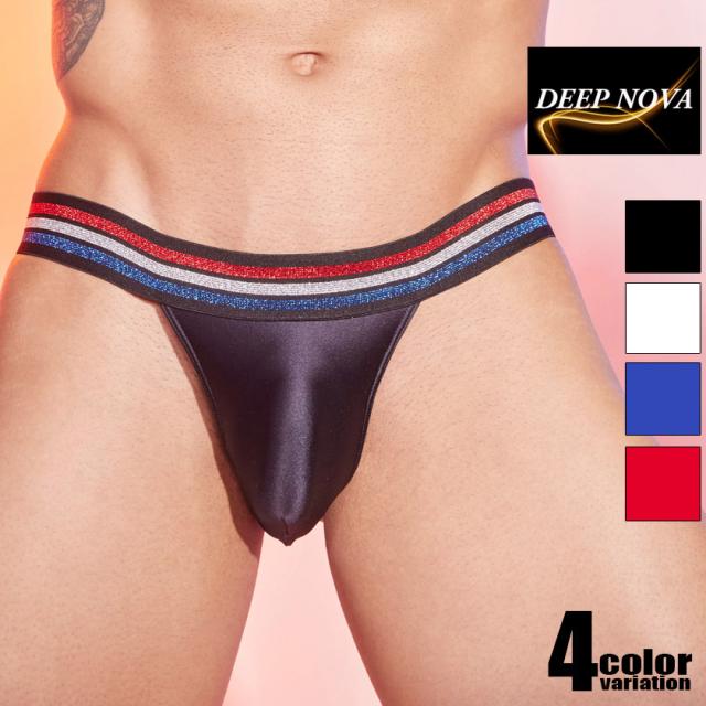 ジョックストラップ メンズ DEEP NOVA/ディープノバ サテン調 Yバック 立体縫製 ジョック 透け 男性下着 メンズ セクシー トリコロールカラー スポーティー ジム スポーツ 運動