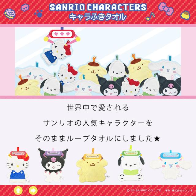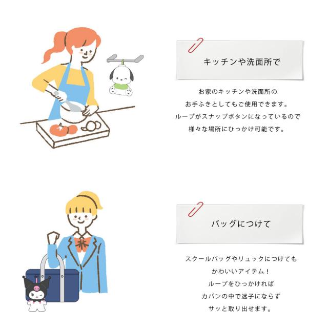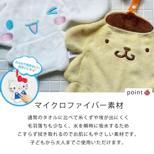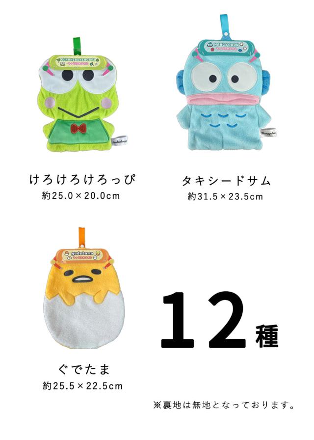 サンリオ ループタオル ダイカット ハンドタオル シナモロール ハローキティ ポムポムプリン ポチャッコ クロミ 幼稚園 保育園 お手ふき マイメロディ バッドばつ丸 あひるのペックル タキシードサム けろけろけろっぴ ハンギョドン ぐでたま