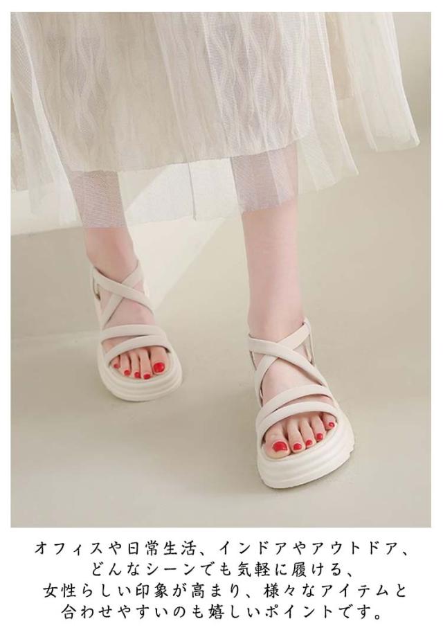 | 軽量で柔軟性・通気性もよく レディース厚底サンダル 軽量で柔軟性・通気性もよく、底には滑り止め加工がされていてます。 履きやすいので普段履きやアウトドアなどいろいろなシーンで活躍します。 オフィスや日常生活、インドアやアウトドア、どんなシーンでも気軽に履ける、女性らしい印象が高まり、様々なアイテムと合わせやすいのも嬉しいポイントです。 歩きやすさと女性らしさを兼ね備えた、ほどよい高さの厚底ソール。自然にスタイルアップ、美脚効果を実現! | |