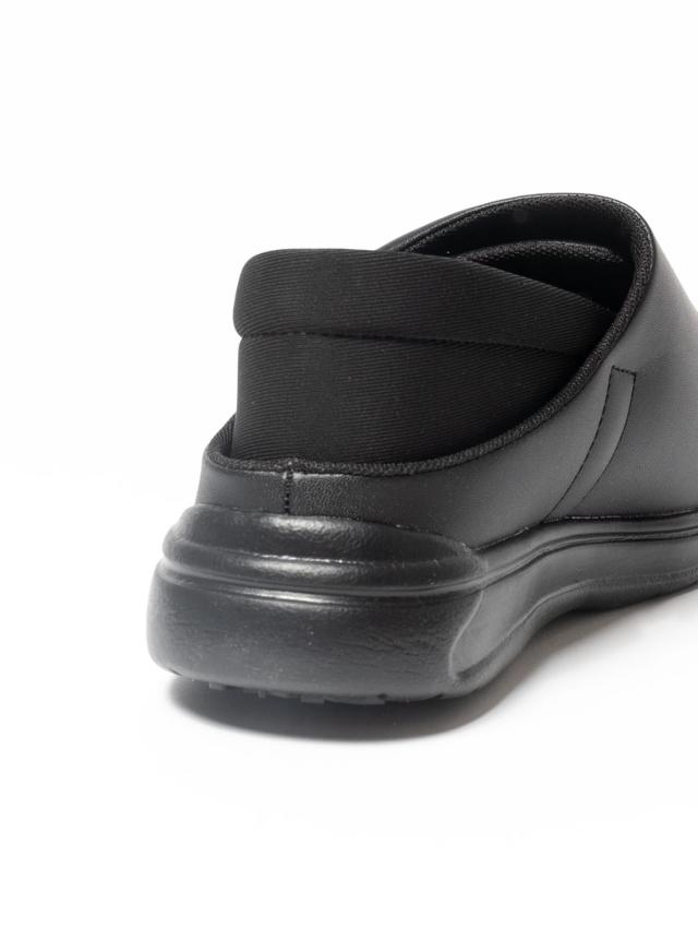 特徴的なかかと部分は、かかとを踏んだまま履けるようストレッチ素材を採用。