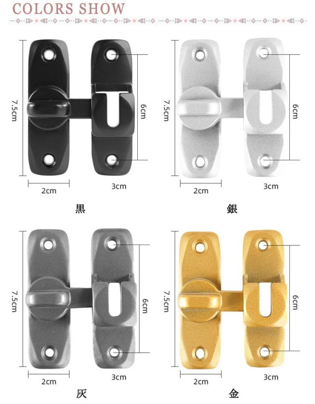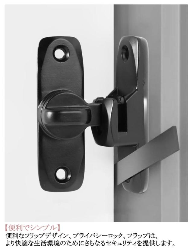 | 回転式90°と180°の両用 ドアや窓のセキュリティーに役立つ後付けドアロック。 ねじでしっかり固定するタイプですので、丈夫で長持ちとなっております。 お手軽にドアに取り付ける事が可能で、お子さんのいたずらやペットの脱走からしっかり守ってくれるアイテムとなっております。 また、90度も180度も取り付けられるから、開き戸も引き戸も様々なドアに対応できます。 子供ケガ防止だけでなく、部屋の外に出ていかないようにしたり、様々な危険を防止できます。 防犯用、部屋のトイレの鍵、追加用の内鍵、部屋のドアに付け。 プライバシーを守りながら、学生や独身者に向いている。防犯対策の安全 ロックです。 簡単施錠でスライドドアの防犯対策ができます。猫の脱走防止用としてもお使いいただけます。 | |