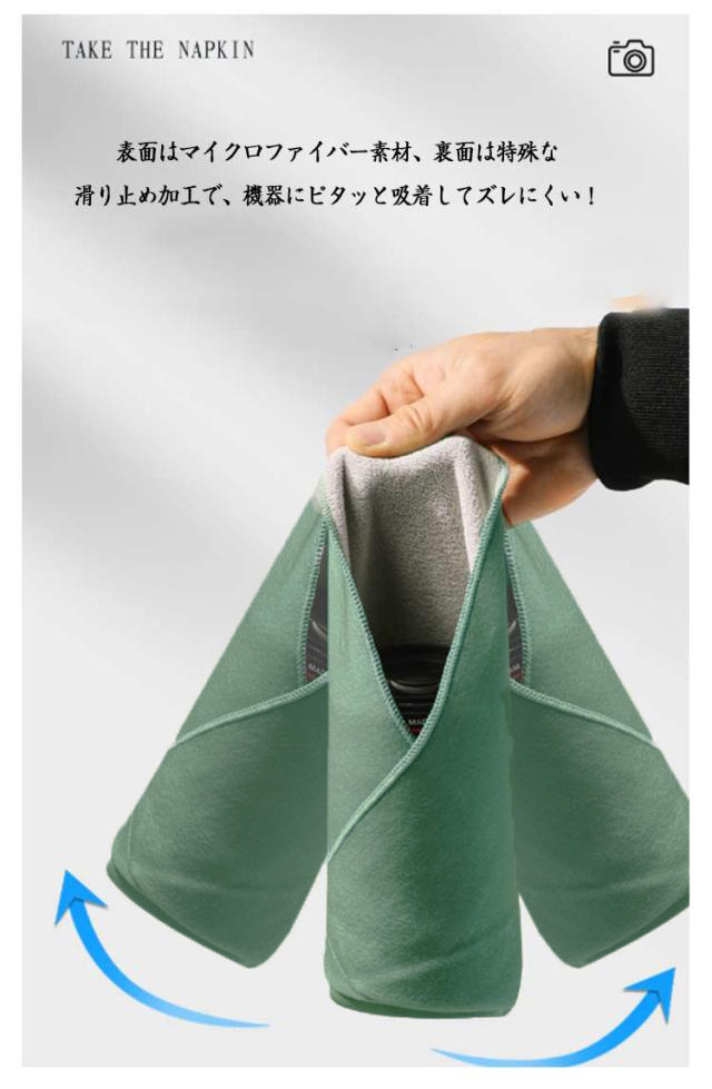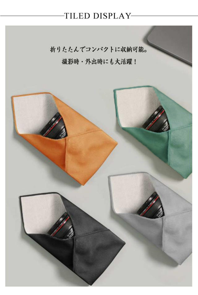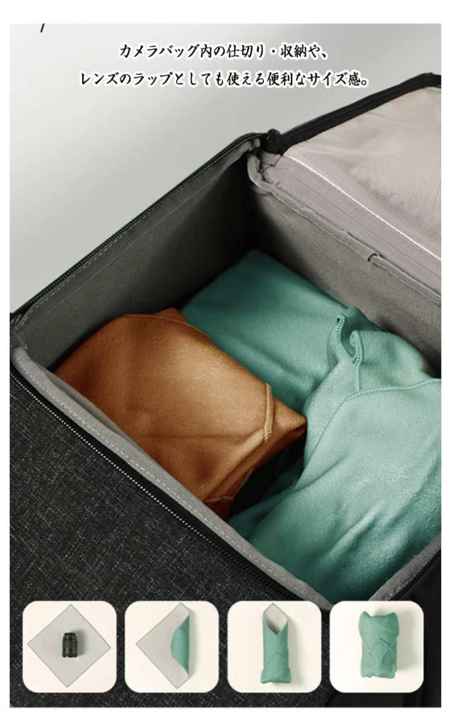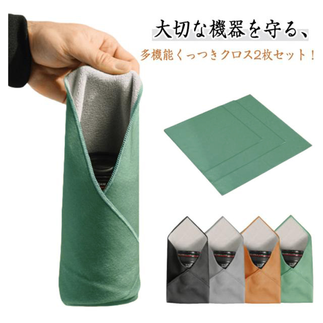 | 大切な機器を守る、多機能くっつきクロス2枚セット! 表面はマイクロファイバー素材、裏面は特殊な滑り止め加工で、機器にピタッと吸着してズレにくい! カメラバッグ内の仕切り・収納や、レンズのラップとしても使える便利なサイズ感。 ほこり・傷・衝撃から機器をしっかりガードし、持ち運びにも安心です。 折りたたんでコンパクトに収納可能。撮影時・外出時にも大活躍! | |