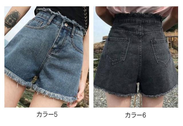 ハイウエスト デニムショートパンツ レディース ゆったり ショートパンツ デニム 短パン ハイウエスト ボトムス 美脚 学生 夏 フリンジ ボトムス ゆったり 送料無料
