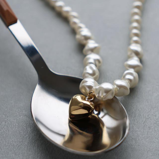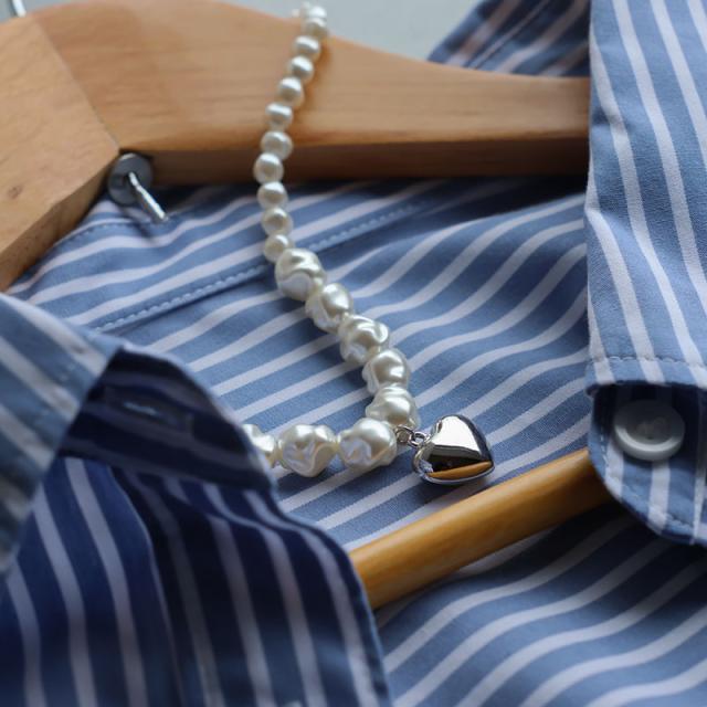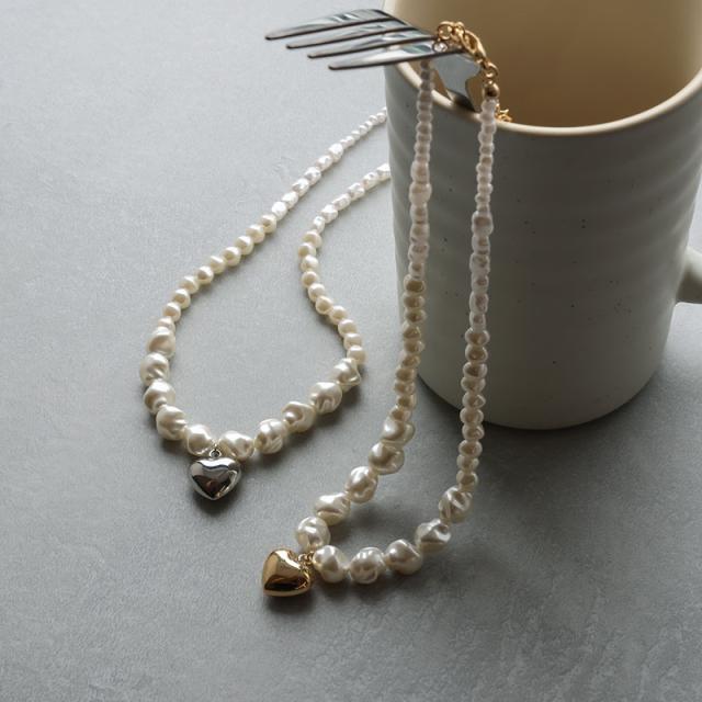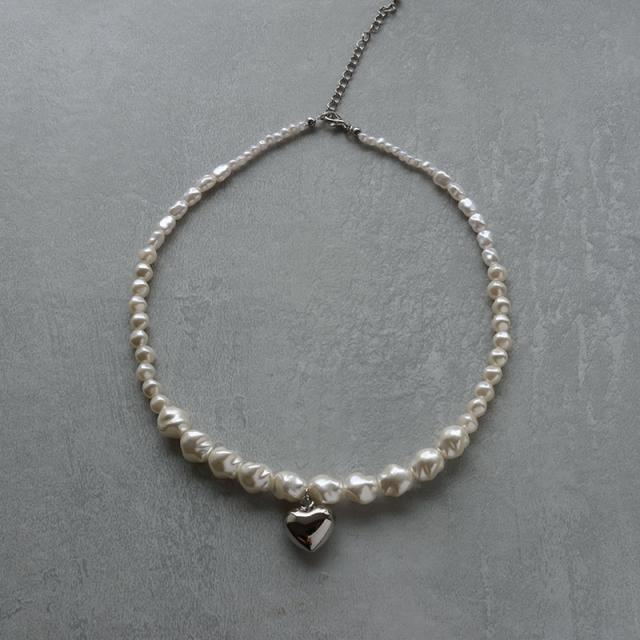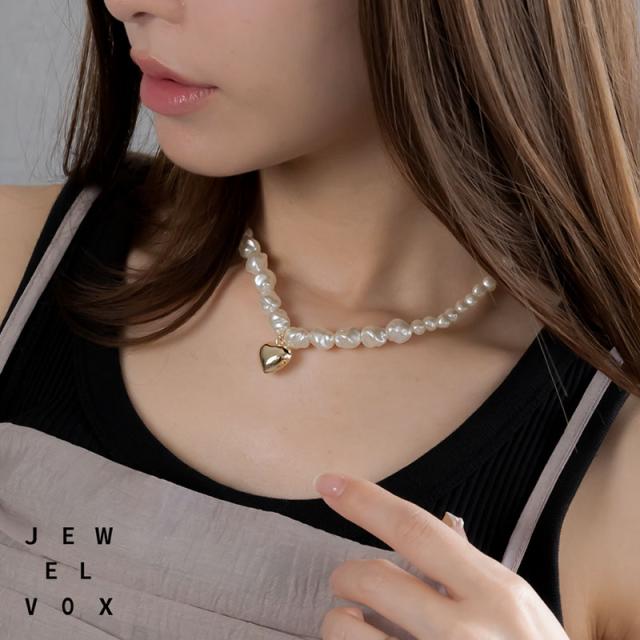 ネックレス レディース 金属アレルギー 淡水パール風 ゴールド シルバー ハート ニッケルフリー 大ぶり ごつめ ごつい 重ね付け 可愛い デイリー シンプル オシャレ 普段使い カジュアル