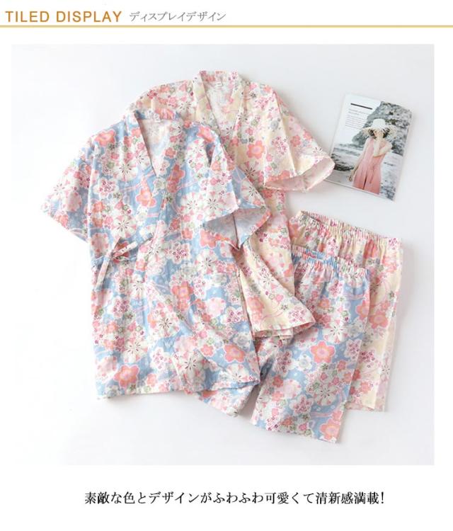 | ゆったりした甚平風デザインが人気のルームウェア上下セット。 素敵な色とデザインがふわふわ可愛くて清新感満載! 吸汗性・通気性に優れた綿素材で、夏でも快適。 簡単に着用できる浴衣式のお寝巻きはとても便利です。 特別に選んだ色と柄の設計、優美で艶やか、女性の美しさを見せます。ゆっとりしたガウンタイプで、窮屈感がなく快適に着用します。 春〜夏にオススメ。誕生日・母の日・結婚祝い・出産祝い・敬老の日・クリスマスプレゼントなどなど、プレゼントにも最適です。 | |