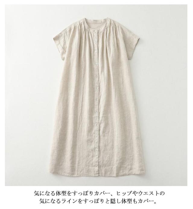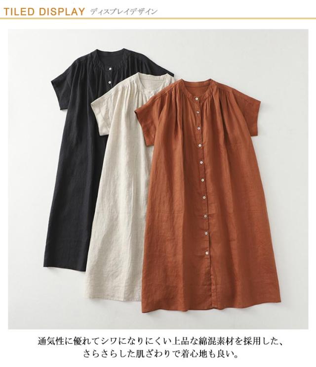 | 爽やかな風合いワンピース。 通気性に優れてシワになりにくい上品な綿混素材を採用した、さらさらした肌ざわりで着心地も良い。 スッキリとしたランドネックデザインで、首元がつまっていないので重ねきもしやすいです。 気になる体型をすっぽりカバー、ヒップやウエストの気になるラインをすっぽりと隠し体型もカバー。 大人のエフォートレスコーデにぴったりな一枚です。 | |