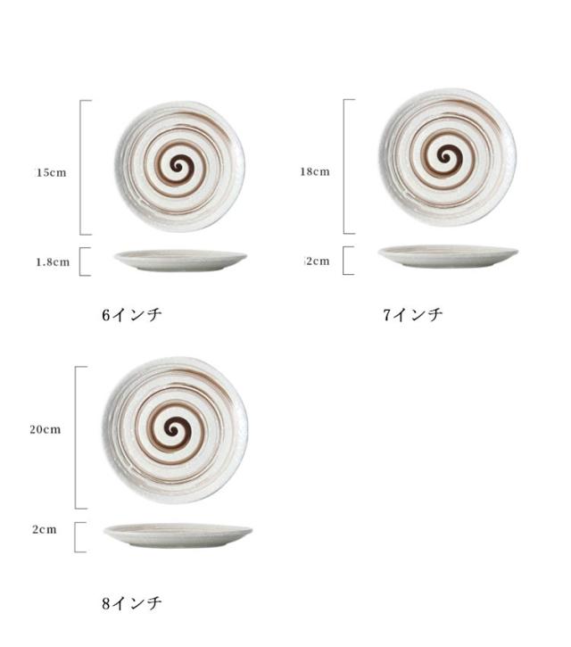 | サイズについての説明 | 6インチ:直径15cm/高さ1.8cm/重さ約230g 7インチ:直径18cm/高さ2cm/重さ約298g 8インチ:直径20cm/高さ2cm/重さ約452g ※サイズ表の実寸法は商品によって1-2cm程度の誤差がある場合がございます。 |