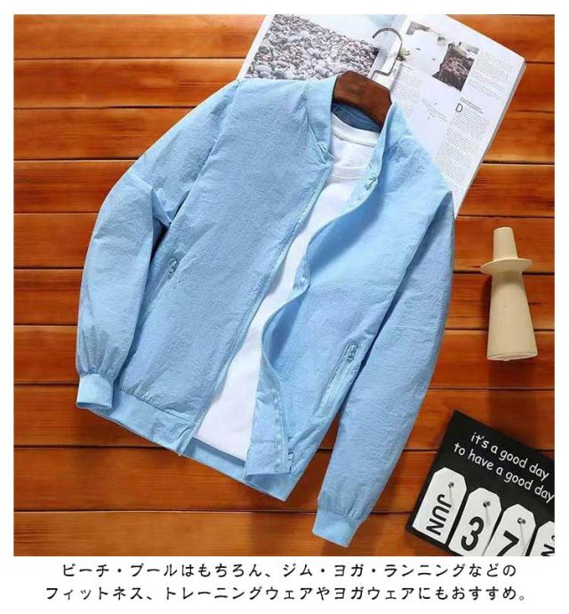 | 接触冷感のある生地を使用し、さらっと柔らかな肌触りで暑い夏もサラサラ。 薄手なのにしっかりUVカット軽量ジャケット。 通気性のある生地を使い、軽量で着心地抜群です。 ファスナーポケット二つが入り、とても便利。 カバンなどに入れて持ち運びもしやすい軽量さは夏のマストアイテム! ビーチ・プールはもちろん、ジム・ヨガ・ランニングなどのフィットネス、トレーニングウェアやヨガウェアにもおすすめ。 アウトドアでの日焼け対策や野外ライブ・フェスイベントやサウナやスパでもオススメです。 | |