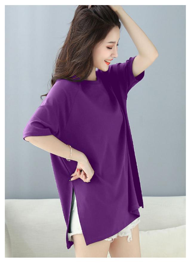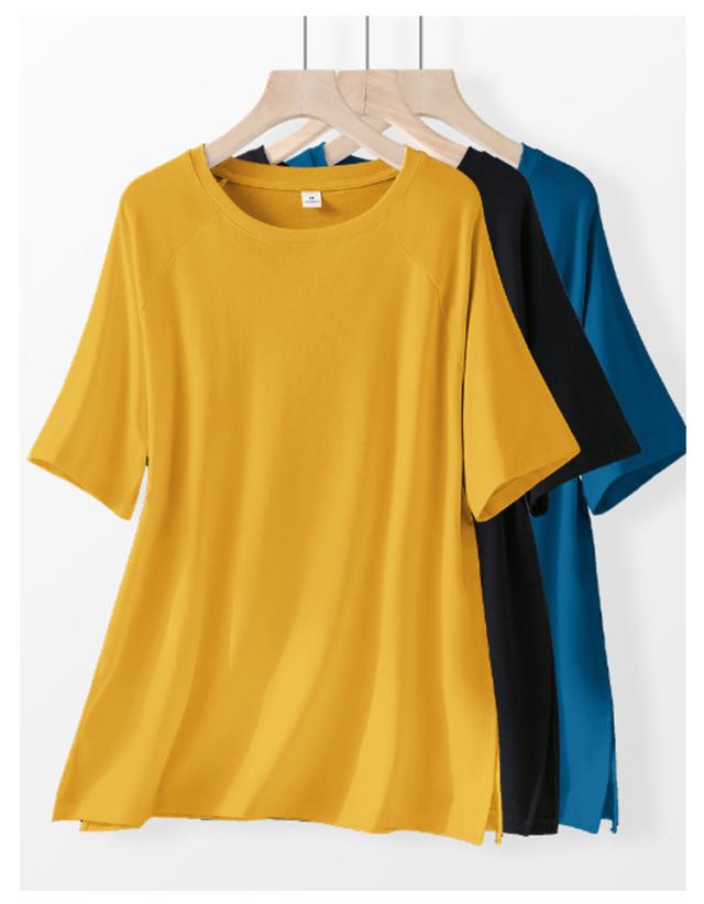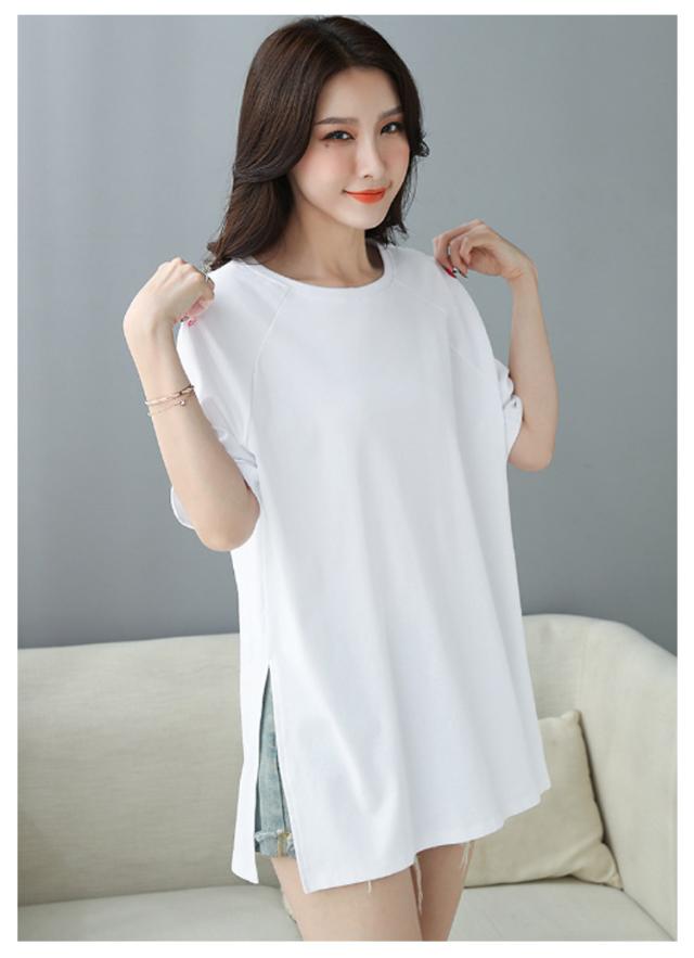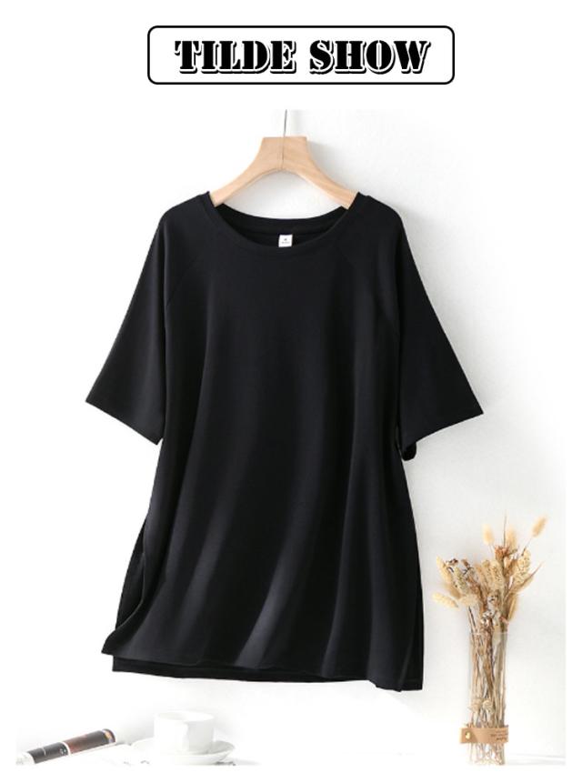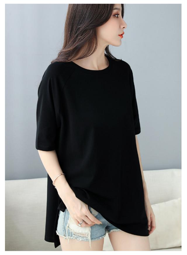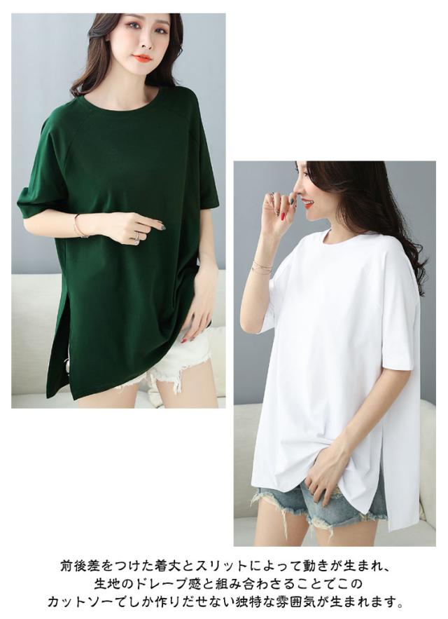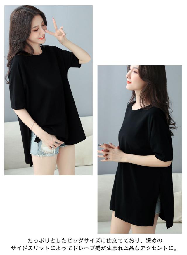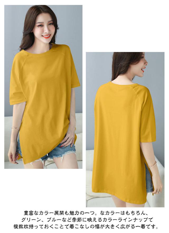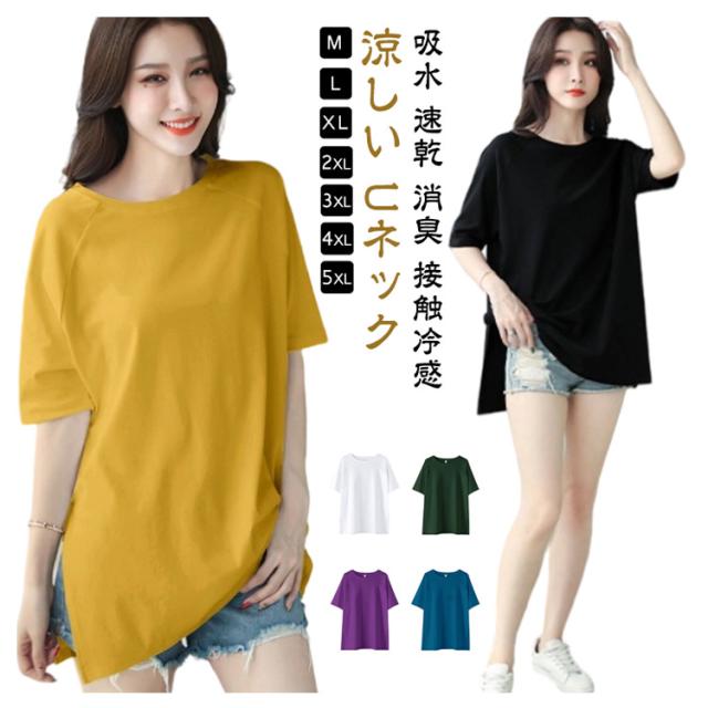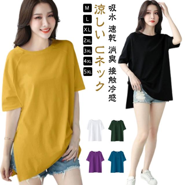 ロング丈 ブラウス 吸水 長め 夏 Tシャツ レディース 5分袖 消臭 半袖 トップス 接触冷感 Uネック 春 丸首 半袖tシャツ 薄手 カットソー ストレッチ 涼しい 速乾 50代 20代 30代 40代 サイドスリット 60代 オーバーサイズ おしゃれ 無地 シンプル 大きいサイズ