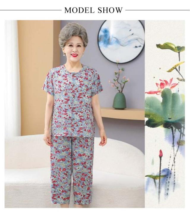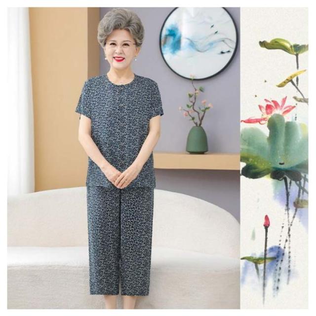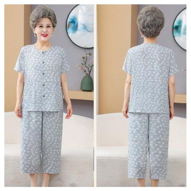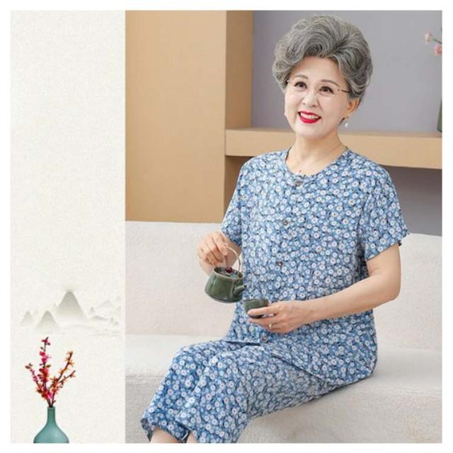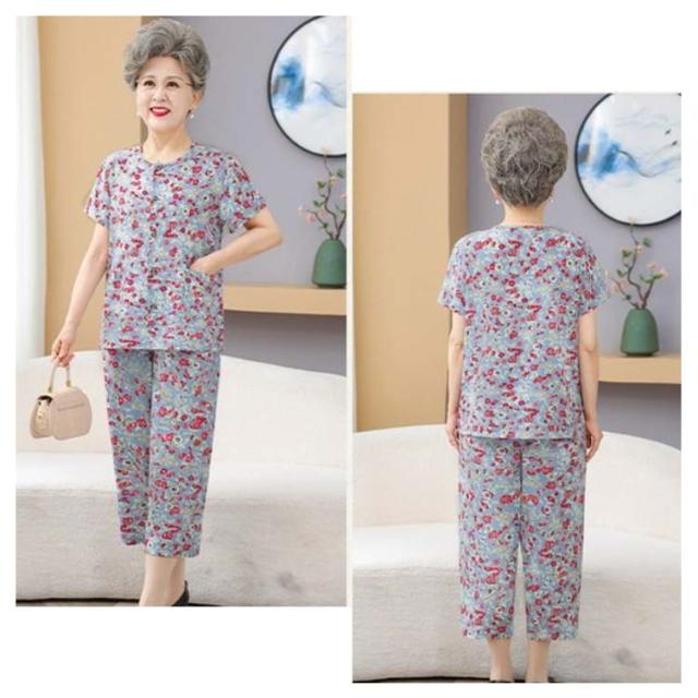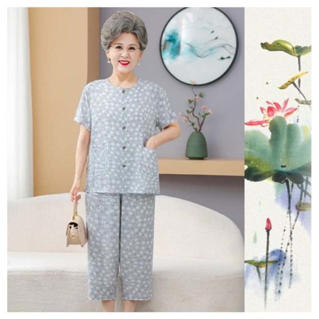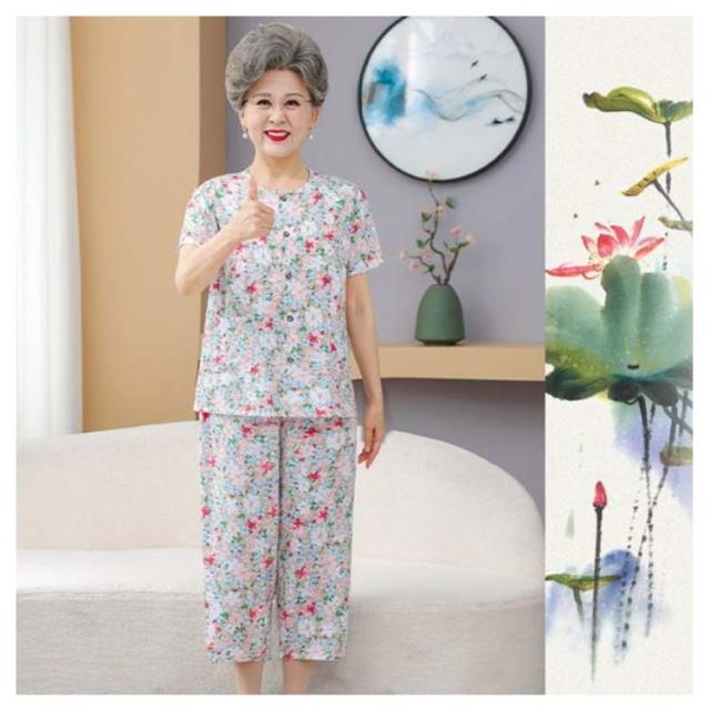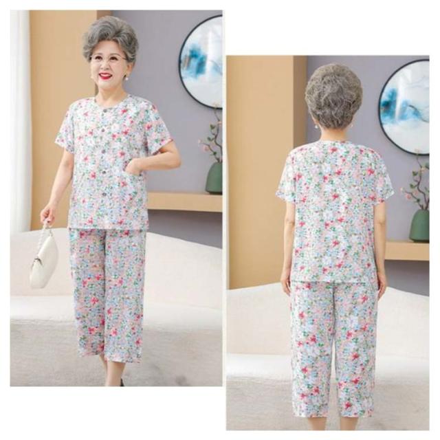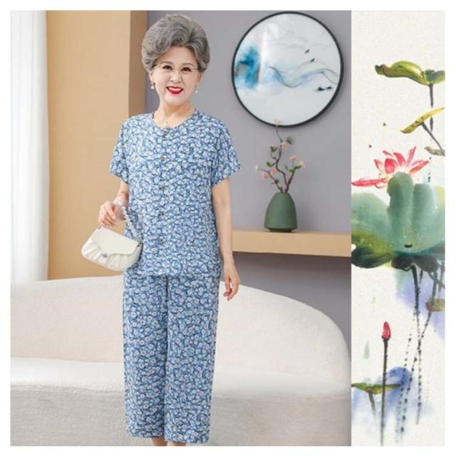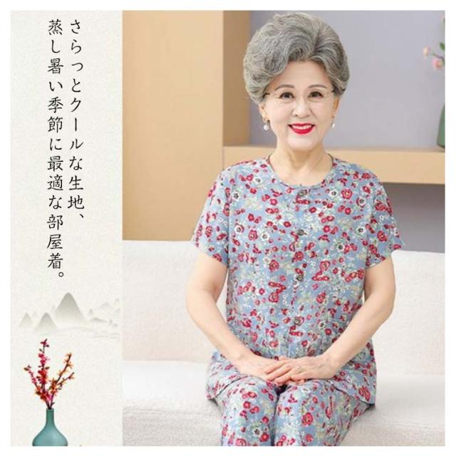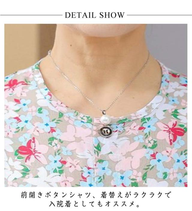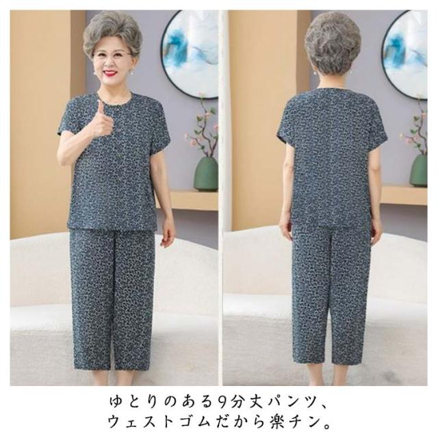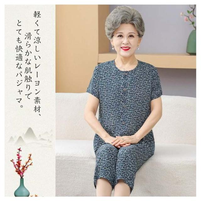 夏用 9分丈パンツ ミセス ルームウェア 涼しい 前開き 半袖 パジャマ 夏用 上下セット 部屋着 シニア 冷たい 涼感 さらっとクール 花柄 総柄 クルーネック 入院着 レーヨン リラックスウェア