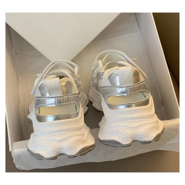 | 【スニーカーサンダル】【22.5-25.0cm】 トレンドのボリュームのあるデザイン。 2本のマジックテープが付いているので調節できます。 厚底デザインなのでスタイルアップになります。 カラーソックスで合わせても裸足で履いてもオススメです。 脚が美しく見える絶妙なフラットソールに設定。 安定感があり歩きやすく、ヒールで美脚・脚長効果も抜群。 スポーティなデザインなのでカジュアルコーデに相性抜群、 フェミニンアイテムと合わせて甘さをDownして甘辛コーデも楽しめる | |