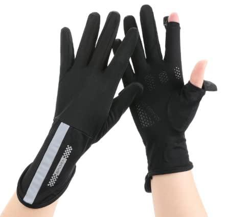 [LYING] 指切り手袋 夏 レディース uvカット グローブ 薄手 2本指出し手袋 スマホ対応 てぶくろ 日焼け止め 運転手袋 滑り止め ロング 手荒れ 紫外線対策 自転車 サイクリング バイク 車用グローブ 女性 おしゃれ 清涼感 (ブラック)