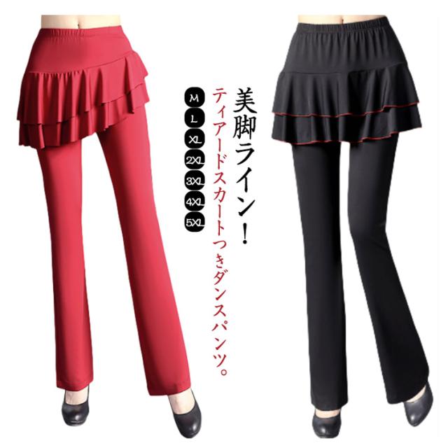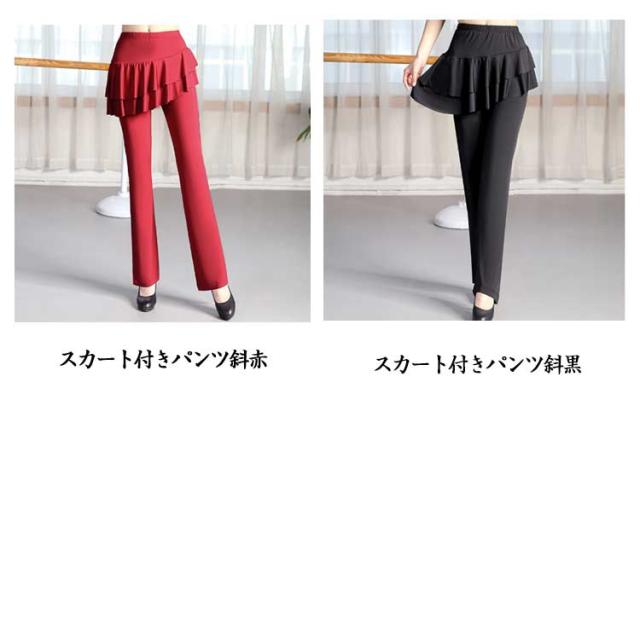 ベリーダンス ミニスカート レディース 一体型 ダンスパンツ ヨガパンツ ヨガ スカート付き ジャージ ブーツカット ダンスパンツ スカパン ダンス 美脚ブーツカット 社交ダンス ヨガウェア ダンス衣装 レッスンパンツ レギンス ストレッチ 体型カバー