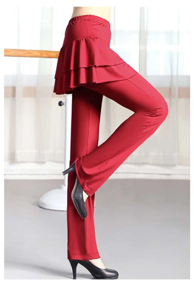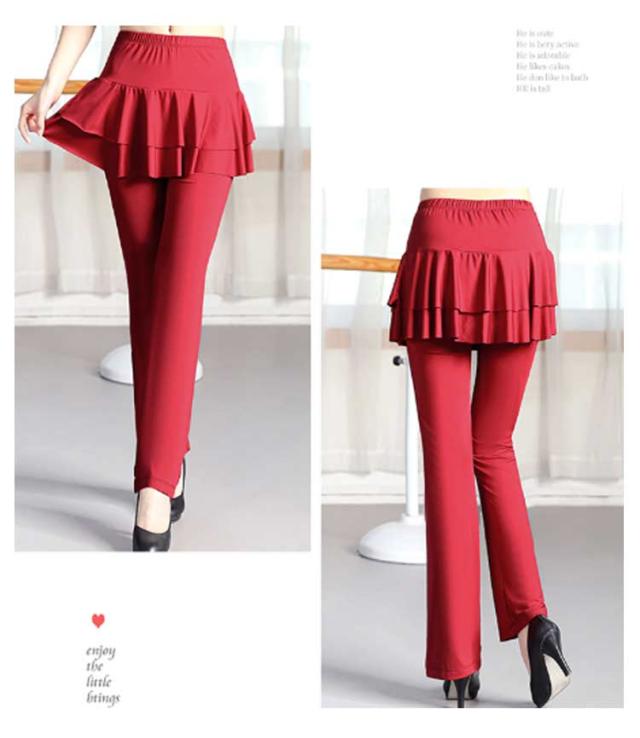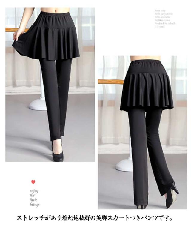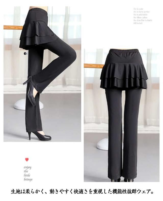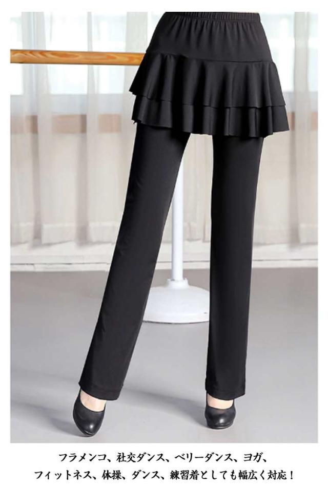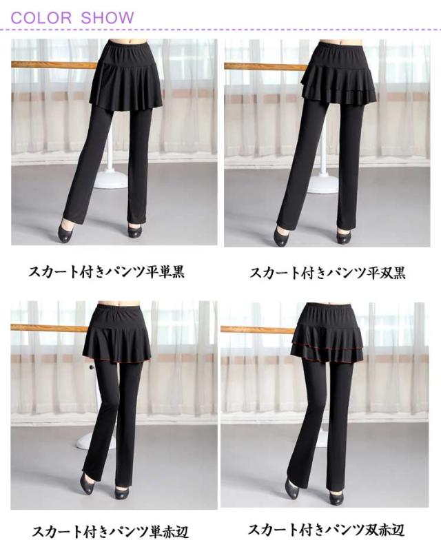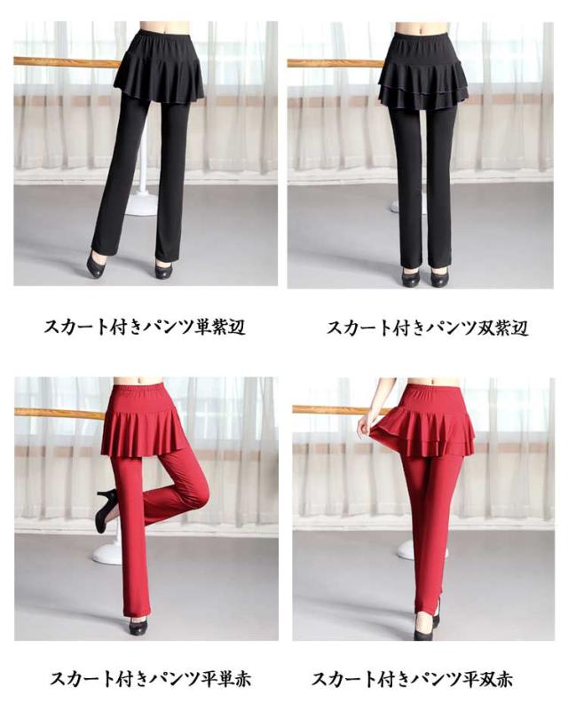 レディース スカート付き ダンスパンツ ベリーダンス 一体型 ダンス衣装 ヨガ ヨガパンツ パンツ ブーツカット ミニスカート ジャージ ダンス 美脚ブーツカット 社交ダンス ヨガウェア スカパン レッスンパンツ レギンス ストレッチ 体型カバー