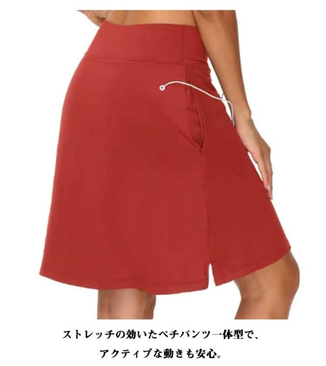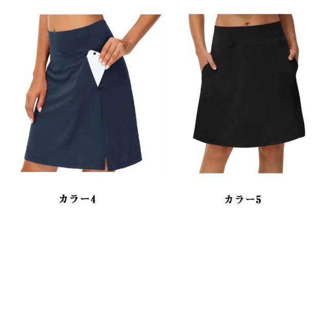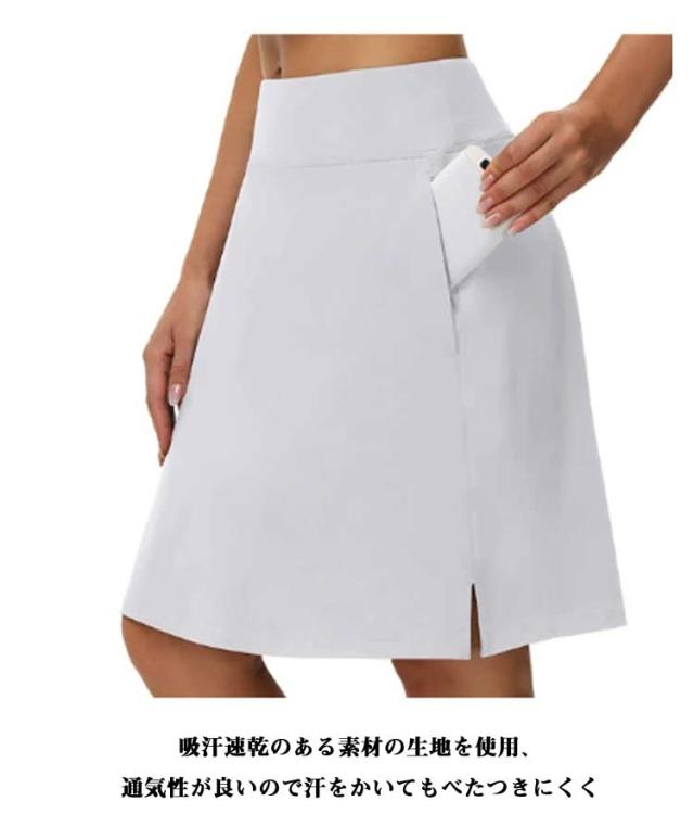 ゴルフ スカート レディース ゴルフウェア テニスウェア インナー 付き 膝丈 スカート 長め テニススカート 丈 女性 インナーパンツ付き 夏 ランニング テニス ゴルフ フィットネス トレーニング ヨガウェア 大きいサイズ