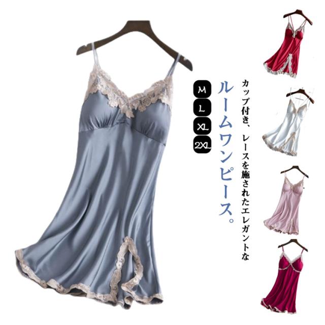 レース ルームワンピース カップ付き ノースリーブ ワンピース カップ付き ロングワンピース ワンピース キャミソール キャミワンピ ナイトウェア 部屋着 大人 かわいい ルームウェア M L XL