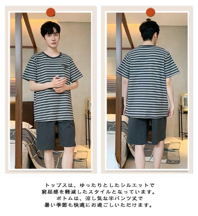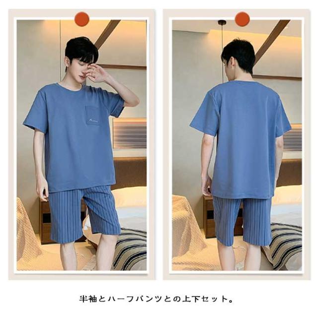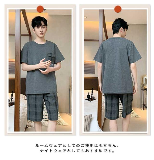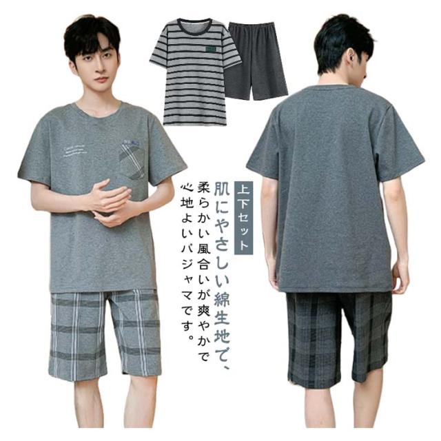 メンズ セットアップ 半袖 綿 パジャマ 上下セット ゆったり 紳士パジャマ パジャマ 男性用 コットン 部屋着 大きいサイズ 薄手 Tシャツ 半ズボン 短パン 春 ナイトウェア 寝巻き 寝間着 夏 リラックスウェア ギフト プレゼント