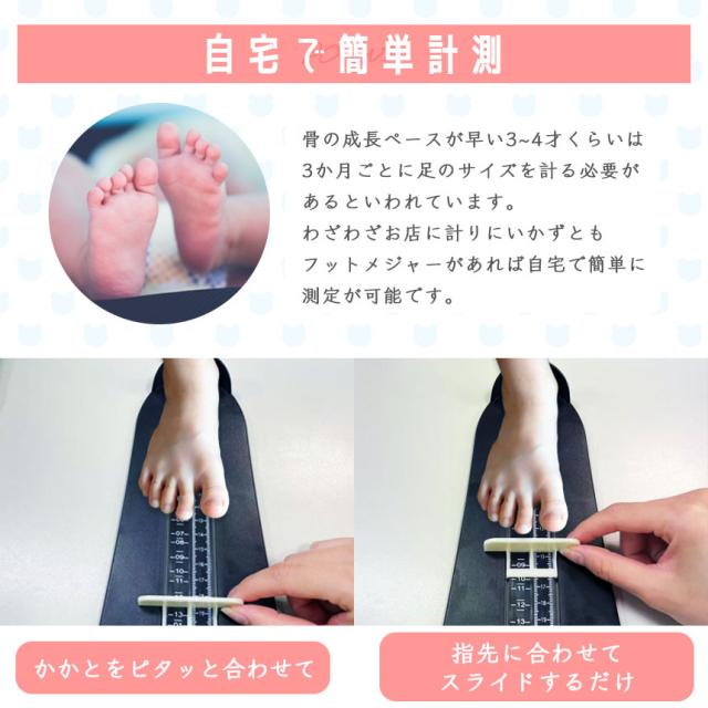 わざわざお店に計りにいかずともフットメジャーがあれば自宅で簡単に測定が可能です。