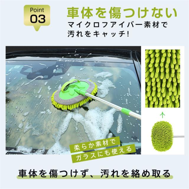洗車モップ 伸縮式 3点セット 洗車ブラシ 180°回転 グローブ マイクロファイバー ブラシボディ 乾湿両用 折り畳み スポンジ