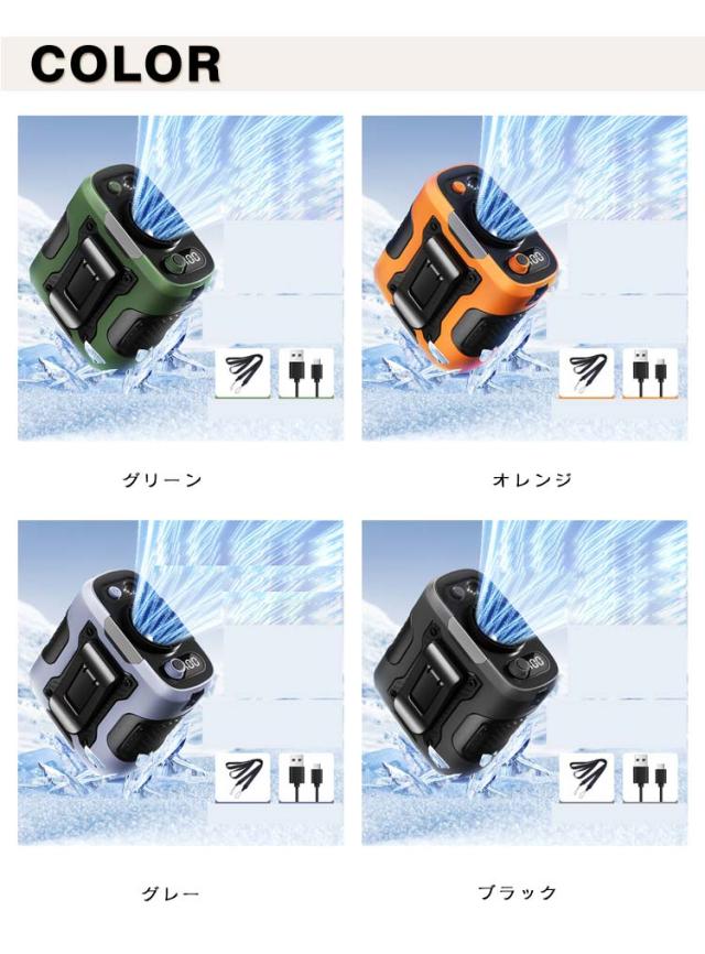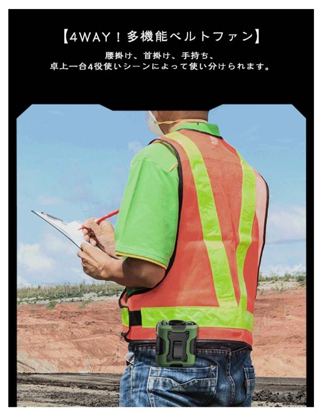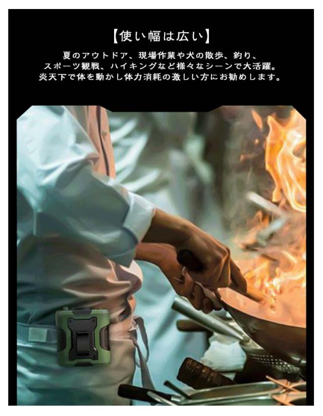 | 【4WAY!多機能ベルトファン】腰掛け、首掛け、手持ち、卓上一台4役使いシーンによって使い分けられます。 【強力送風・大容量電池】風力は通常の扇風機の10倍に達します。最大12M/Sな送風速度、13500RPM回転速度で3秒ほど360°全身が冷たい風に包まれます。 【装着は自由自在】ベルトに取付けてシャツの裾をクリップで挟んだら、服内に風を送り込めます。付属のストラップをつけば首にも引っ掛けられるので両手が解放され、使い勝手は良い。 【100段階風量調節】風量モードの強弱は100段階に切替えるので状況によって快適に調節できます。服の中を循環する風が汗を蒸発させ、体を涼しく体温の上昇を抑えます。 風と照明を兼ね備えたアウトドア旅行の必需品。1段階のD強力照明で、暗闇の中で一目で明るく。2段階のSOSストロボ警告灯で、緊急時に切の替えて使用できます。 【使い幅は広い】夏のアウトドア、現場作業や犬の散歩、釣り、スポーツ観戦、ハイキングなど様々なシーンで大活躍。炎天下で体を動かし体力消耗の激しい方にお勧めします。 | |