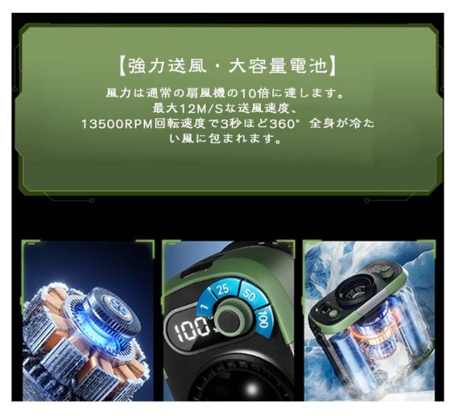 | サイズについての説明 | サイズ:最大12M/Sな送風速度 13500RPM回転速度 バッテリー容量:6000mAh 100段階風量調節 消費電力:約10W 出力(USB):USB 5V/2A 重量約338.1g ※サイズ計測には誤差が生じます。 |